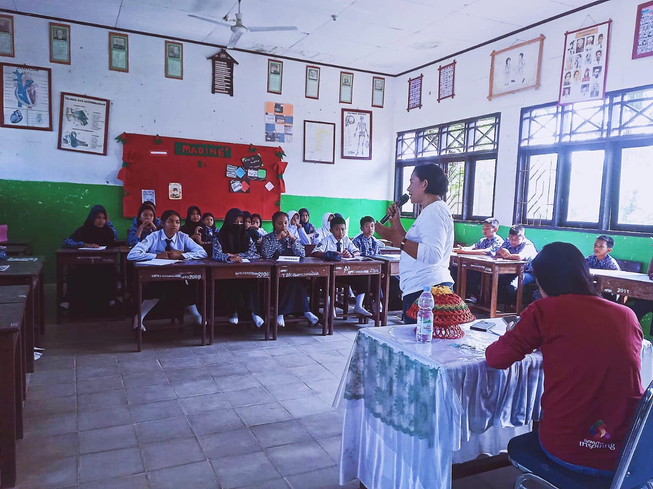 Rabu, (26/7/2023), UPT SMPN 1 Kalaena kedatangan tamu dari tim UPTD Puskesmas Kalaena yaitu Ibu Yuliana Solo, Amd,Keb dan Ibu Destin, Amd.Keb untuk melakukan program kerja sesuai dengan surat kunjungan dari UPTD Puskesmas Kalaena serta bentuk wujud kerjasama dengan tim UKS UPT SMPN 1 Kalaena. Pukul 08.30 WITA kegiatan berlangsung di ruangan ramah anak yang dihadiri oleh 6 laki-laki dan 24 perempuan dengan jumlah keseluruhan 34 orang masing-masing perwakilan kelas dan didampingi oleh pembina UKS Ibu Putri Kerta Winarti, S.Pd dan Ibu Sitti Sabariati, SE. Dalam kegiatan ini Ibu Yuliana Solo, Amd.Keb selaku pemateri menyampaikan beberapa materi yaitu (1) Pengertian Masa Remaja, (2) Kesehatan Reproduksi Remaja, dan (3) Dampak Pernikahan Dini.