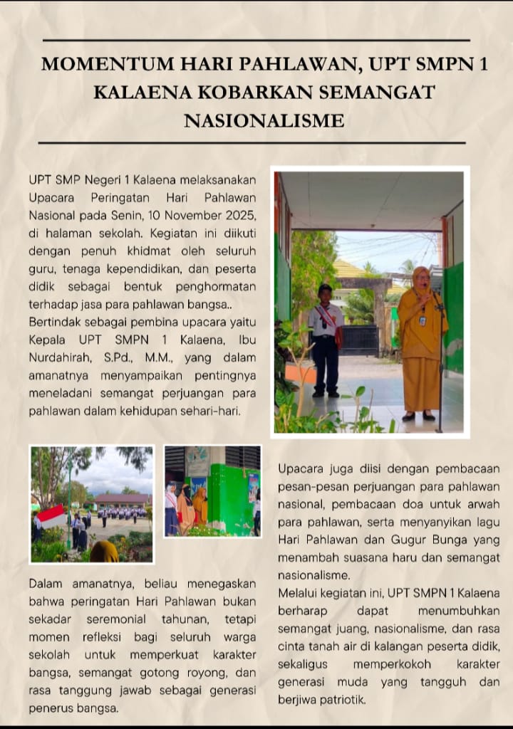MOMENTUM HARI PAHLAWAN UPT SMPN 1 KALAENA KOBARKAN SEMANGAT NASIONALISME