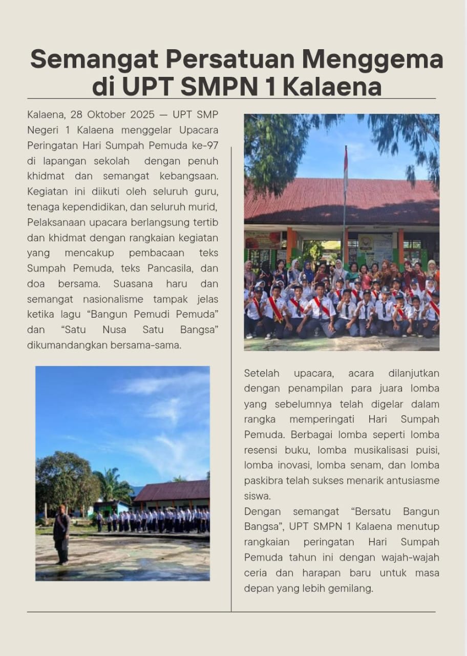 SEMANGAT PERSATUAN MENGGEMA DI UPT SMPN 1 KALAENA DALAM PERAYAAN HARI SUMPAH PEMUDA