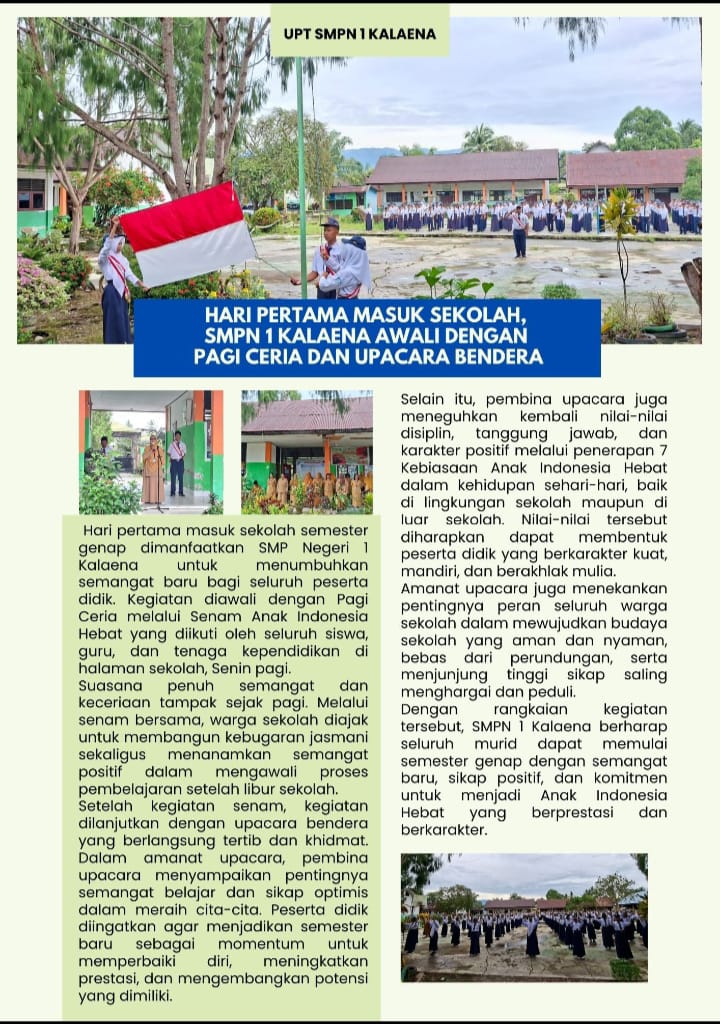 SMPN 1 KALAENA AWALI HARI PERTAMA SEKOLAH DENGAN UPACARA BENDERA DAN PAGI CERIA